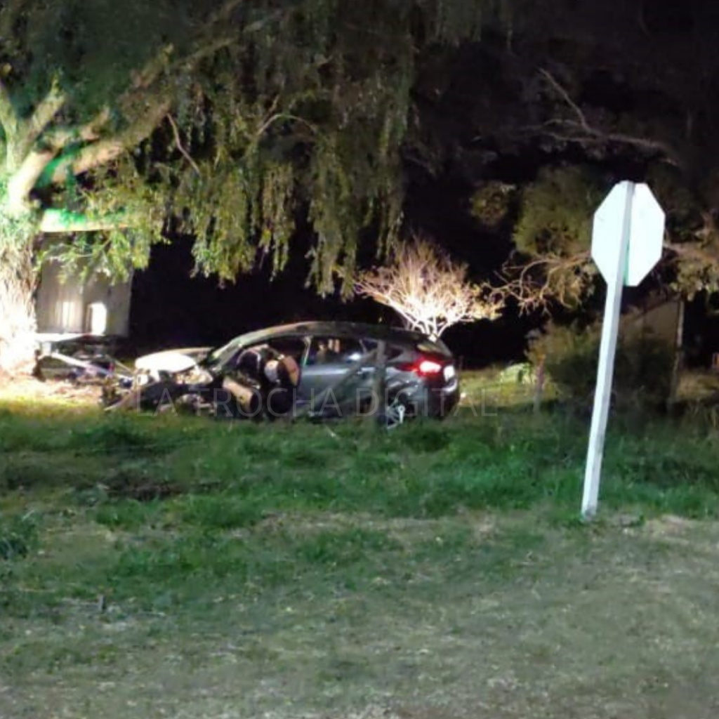 En la noche del viernes, un automóvil despistó y colisionó contra un árbol, destruyendo la parte delantera del vehículo.