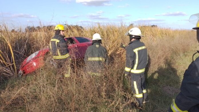 Un auto perdió el control, despistó y volcó. El siniestro ocurrió en la tarde de este sábado aproximadamente a las 16 horas en el camino a Miramar, en cercanías al tambo de la familia Muñóz.